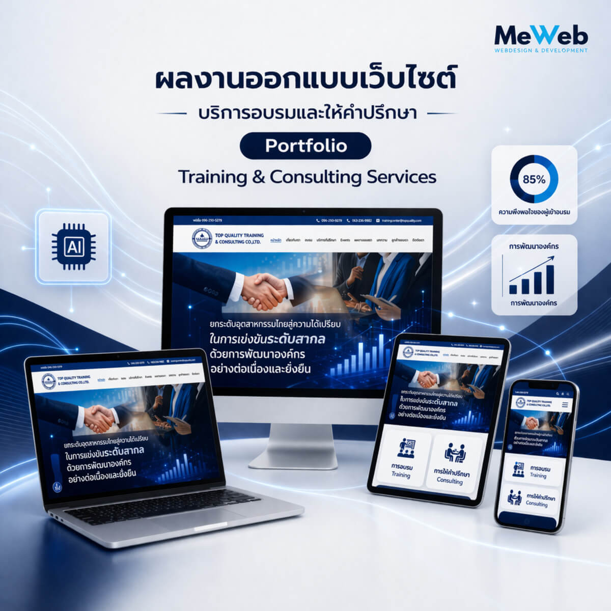 การทำ website กับ MeWeb หรือถามว่าทำไมต้องทำ website กับ MeWeb ที่ตัดสินใจเพราะว่า MeWeb มีความรู้หลายส่วน ทั้ง กราฟฟิก /marketing /Web design / Web programing ทำให้ขั้นตอนการบริฟและทำงานนั้นกระชัด ไม่ต้องพูดเยอะ และงานมีคุณภาพ สุดท้ายมี service mind และนิสัยดีด้วยครับ