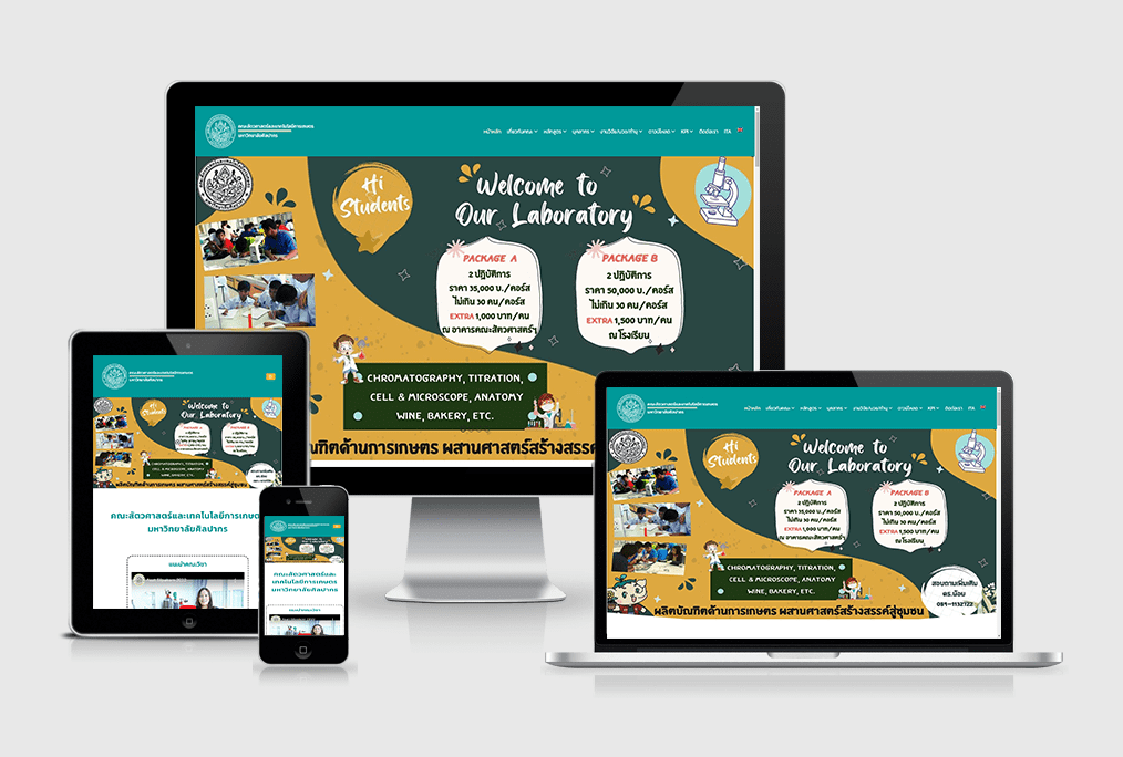 ลูกค้าต้องการ เว็บไซต์การศึกษา คณะสัตวศาสตร์และเทคโนโลยีการเกษตรมหาวิทยาลัยศิลปากร จัดทำเพื่อผลิตบัณฑิตและถ่ายทอดเทคโนโลยีการเกษตรสู่ชุมชน ลูกค้าเลือกใช้แพ็กเกจ Custom 2 ภาษา เพื่อให้หน้าเว็บมีการแสดงข้อมูลเกี่ยวกับข้อมูลของคณะ ไม่ว่าจะเป็นเกี่ยวกับหลักสูตร บุคลากร งานวิจัย เอกสารที่ให้ดาวน์โหลดต่างๆ เท่านั้นยังไม่พอ ยังมีหัวข้อความประชาสัมพันธ์ต่างๆ ไม่ว่าจะเป็นการเปิดรับสมัครนักศึกษา ,การสมัครงานของบุคลากร ข่าวกิจกรรมและภาพต่างๆ รวมถึงข้อมูลอื่นๆ อีกมากมาย ทีมงานจึงออกแบบให้ใช้งานง่าย ดูสวยงาม และรองรับการแสดงผลแบบ Responsive ทุกอุปกรณ์การใช้งาน