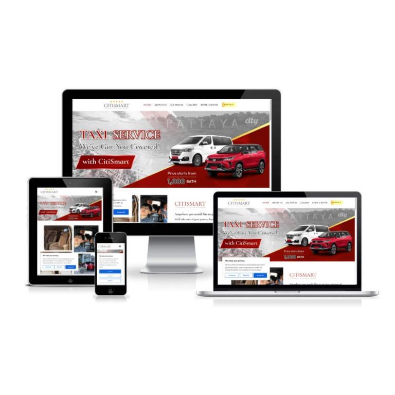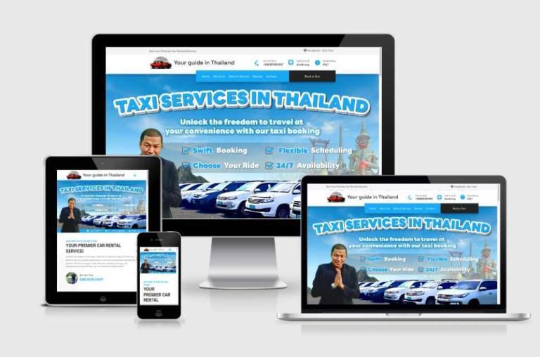 ลูกค้าต้องการ ทำเว็บไซต์บริการรถแท็กซี่ ลูกค้าเลือกใช้แพ็กเกจ Spacial S เป็นบริการรถแท็กซี่หรู ราคาเริ่มต้นตามความเหมาะสม มีบริการรับ-ส่งสนามบิน บริการรับส่งโรงแรม บริการทัวร์และความต้องการของคุณทุกที่ในประเทศไทย พร้อมระบุราคาที่คุณสามารถเลือกได้ ปลอดภัยและบริการตลอด 24 ชม. ทีมงานจึงออกแบบให้ใช้งานง่าย และรองรับการแสดงผลแบบ Responsive ทุกอุปกรณ์การใช้งาน