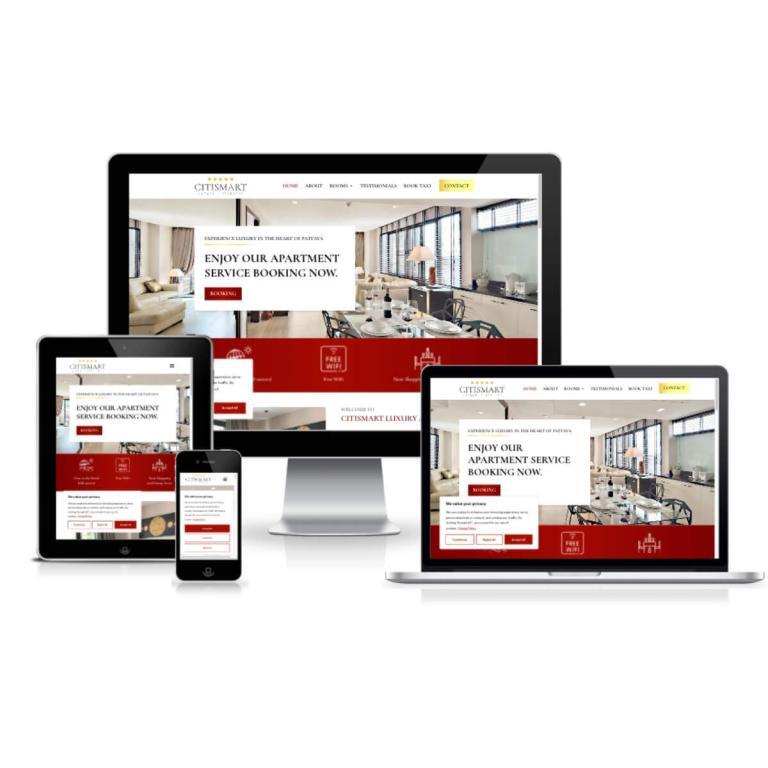 ลูกค้าต้องการเว็บไซต์รีสอร์ท ที่พักสไตล์ Boutique Hotel ที่มีประสบการณ์ในสายงานนี้มากกว่า 10ปี มีสาขากว่า 6 แห่งในกรุงเทพฯ และมีโครงการที่จะขยายสาขาขึ้นอีกในอนาคต โดยเน้นบริการที่สะดวก รวดเร็ว ง่ายต่อการเข้าพักและมอบความเป็นส่วนตัวแก่ผู้เข้าพัก ลูกค้าเลือกใช้แพ็กเกจ Custom เพื่อใส่ข้อมูลเกี่ยวกับห้องพัก แต่ละสาขา ทีมงานจึงออกแบบให้ใช้งานง่าย และรองรับการแสดงผลแบบ Responsive ทุกอุปกรณ์การใช้งาน